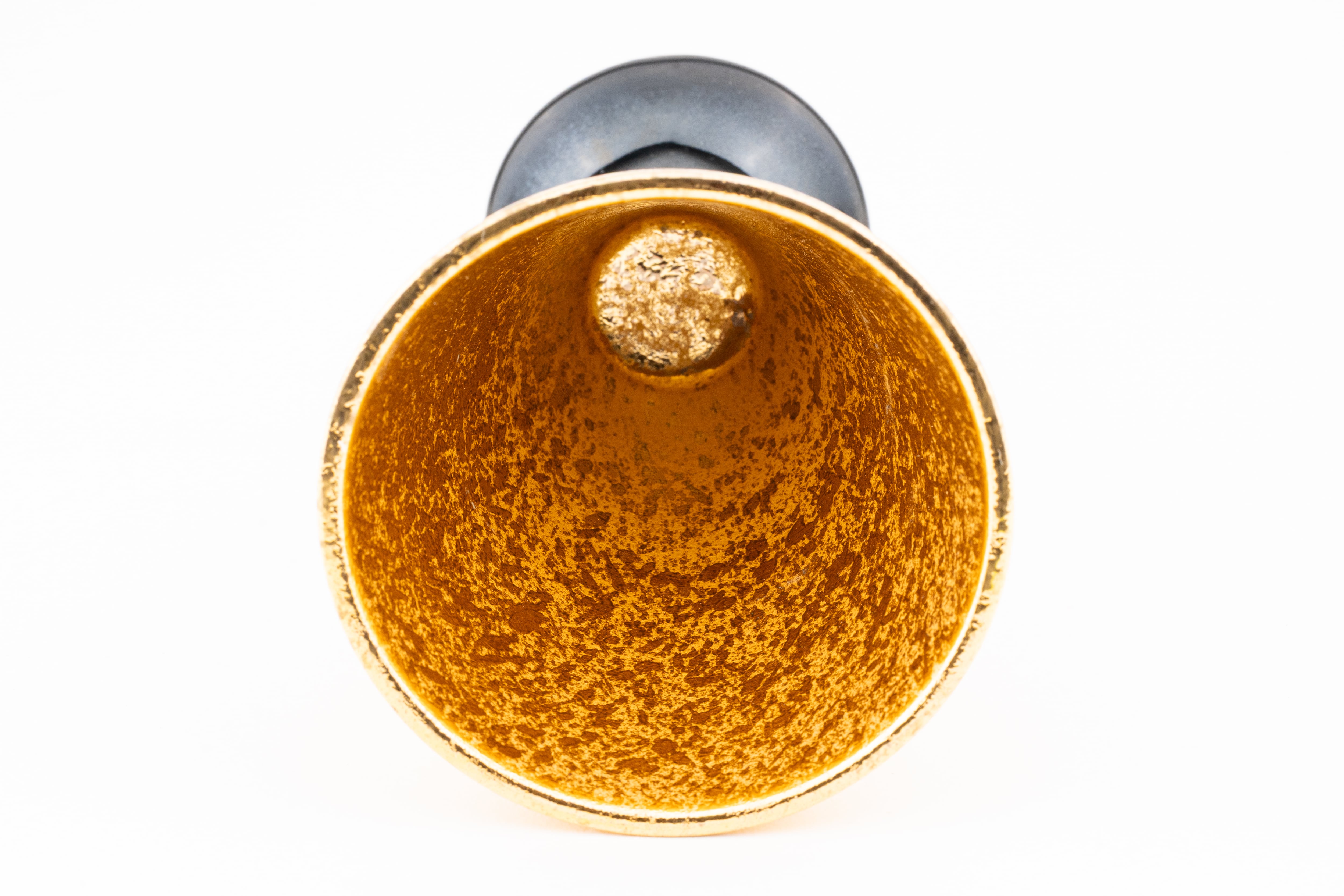 器全体に贅沢に施されたまばゆい黄金色と、キリッと引き締める黒い脚(ステム)のコントラストが、テーブルに圧倒的な高級感をもたらします。