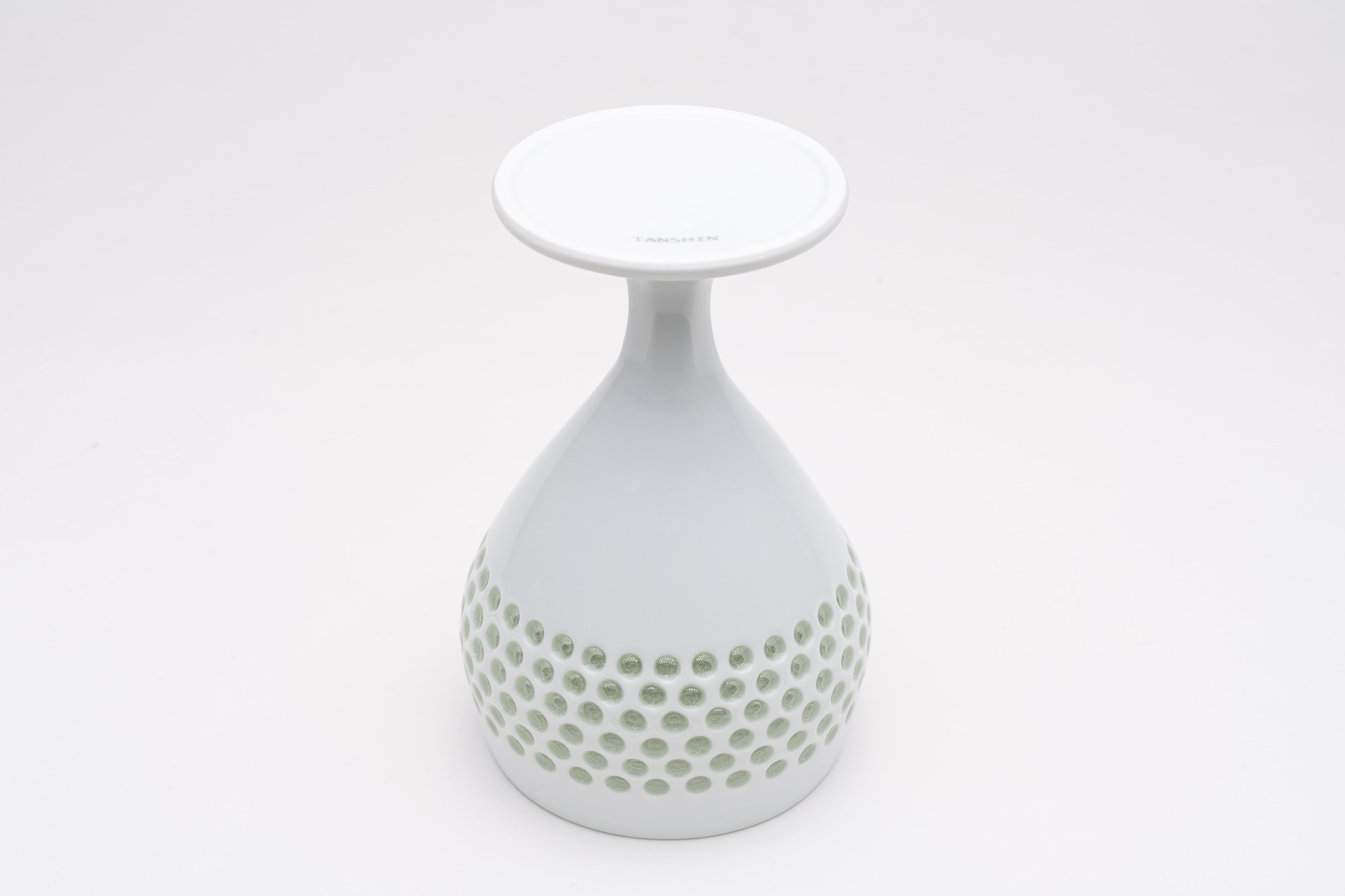真っ白な磁器に施されたドット柄は、丹心窯の独自技法である「水晶彫(すいしょうぼり)」。