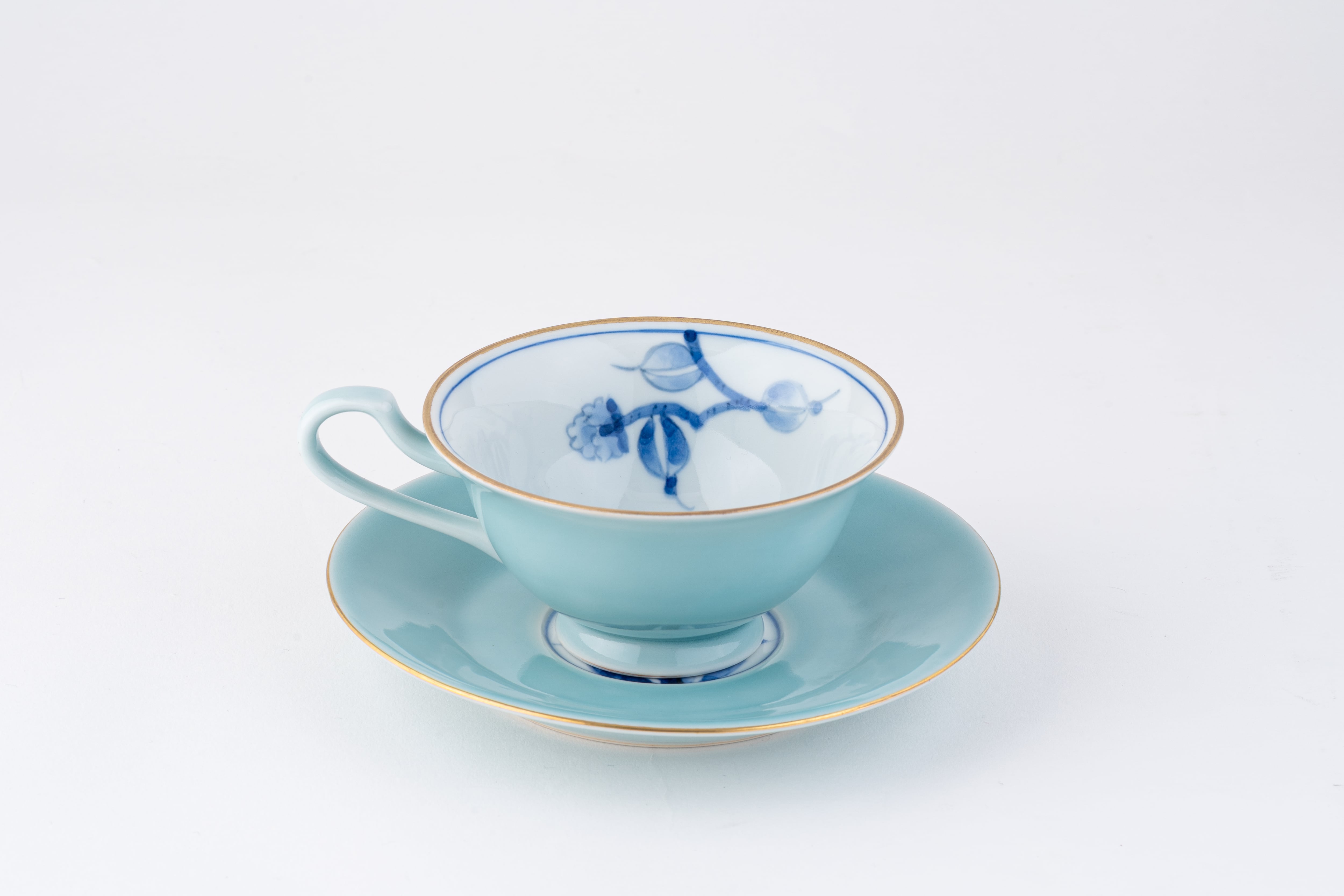 【有田焼】三宅窯 カメリア柄 ティーカップ&ソーサー(ブルー)
