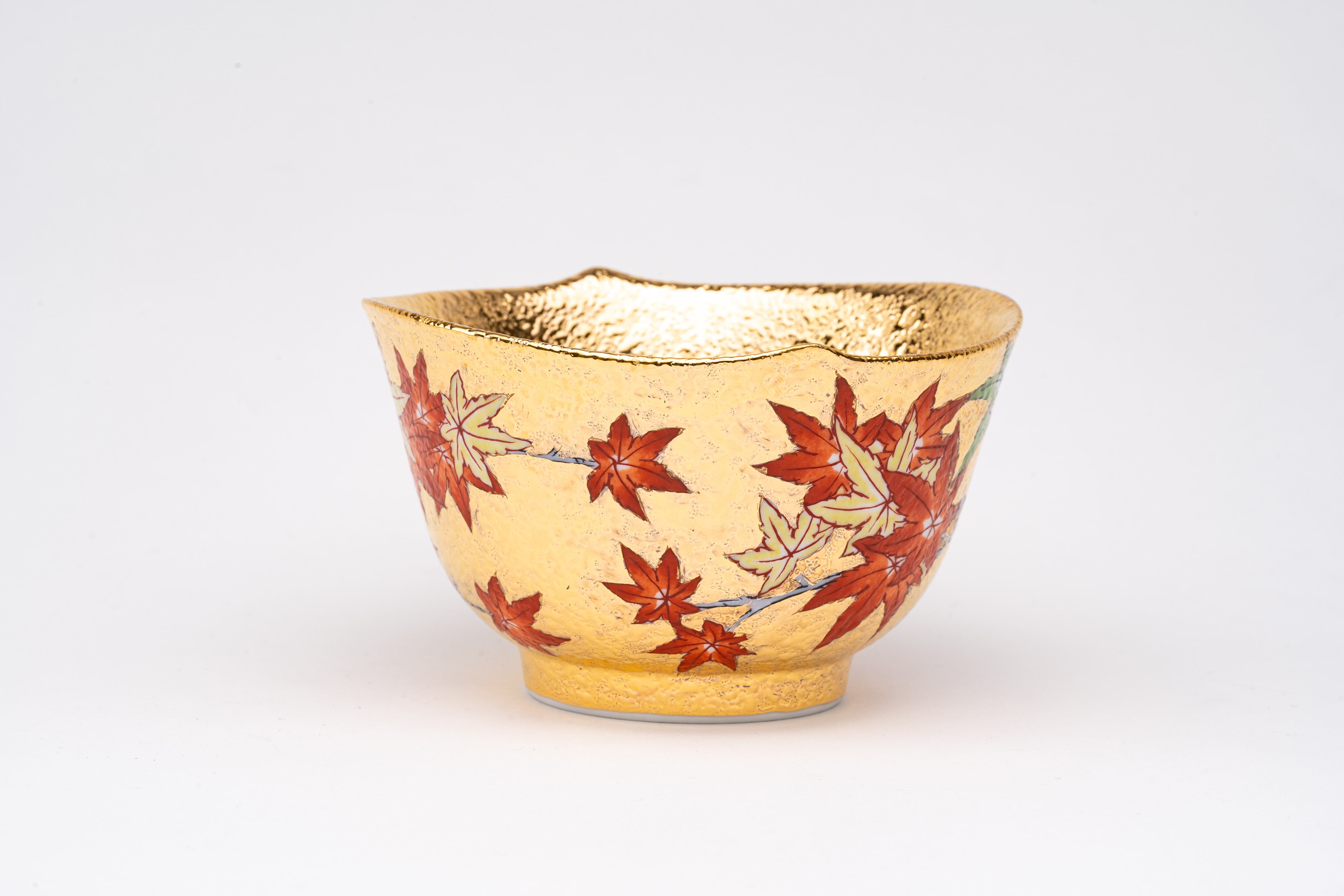 ・全面金彩に色鮮やかな紅葉文様 ── 秋の風情を感じる華やかなデザイン