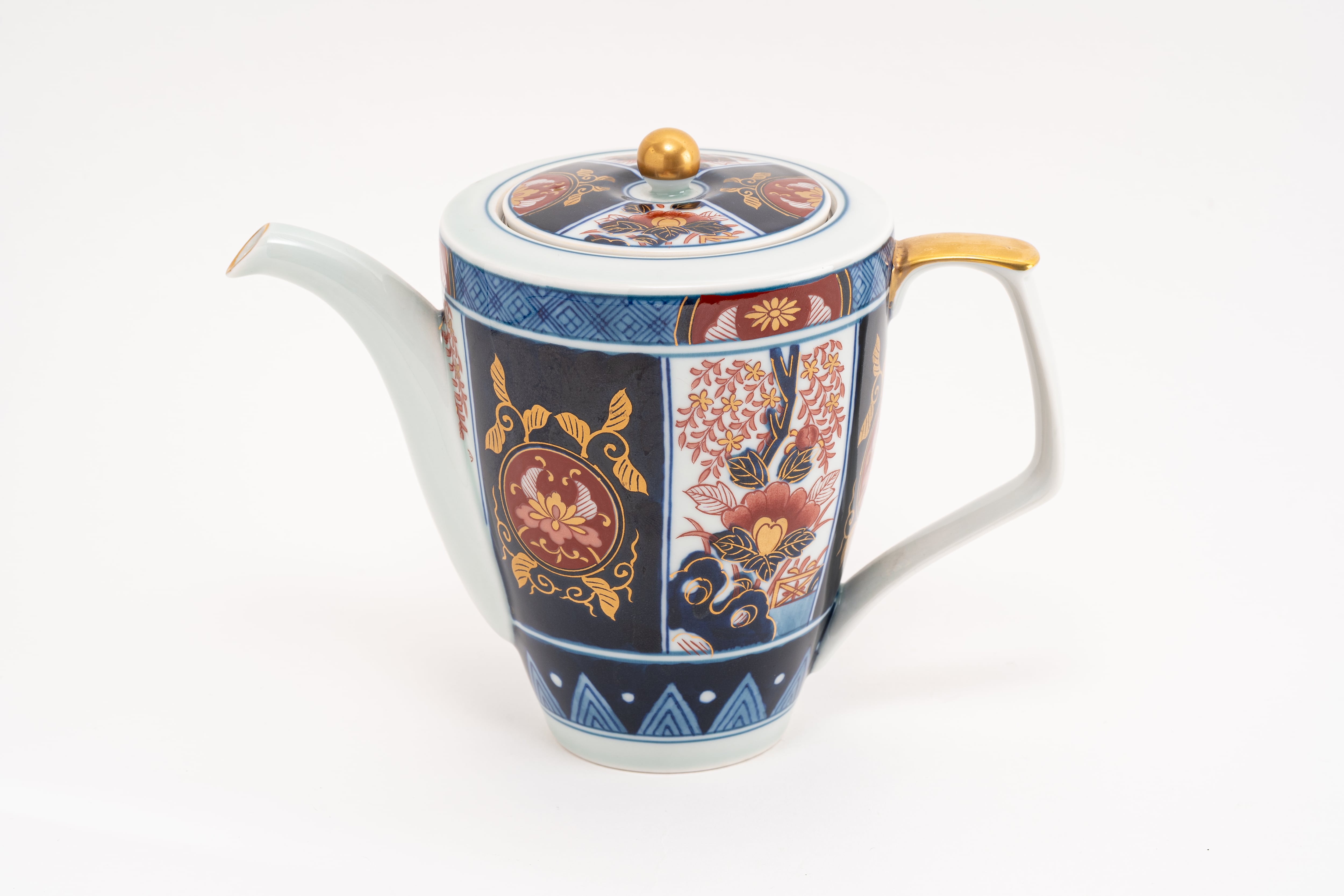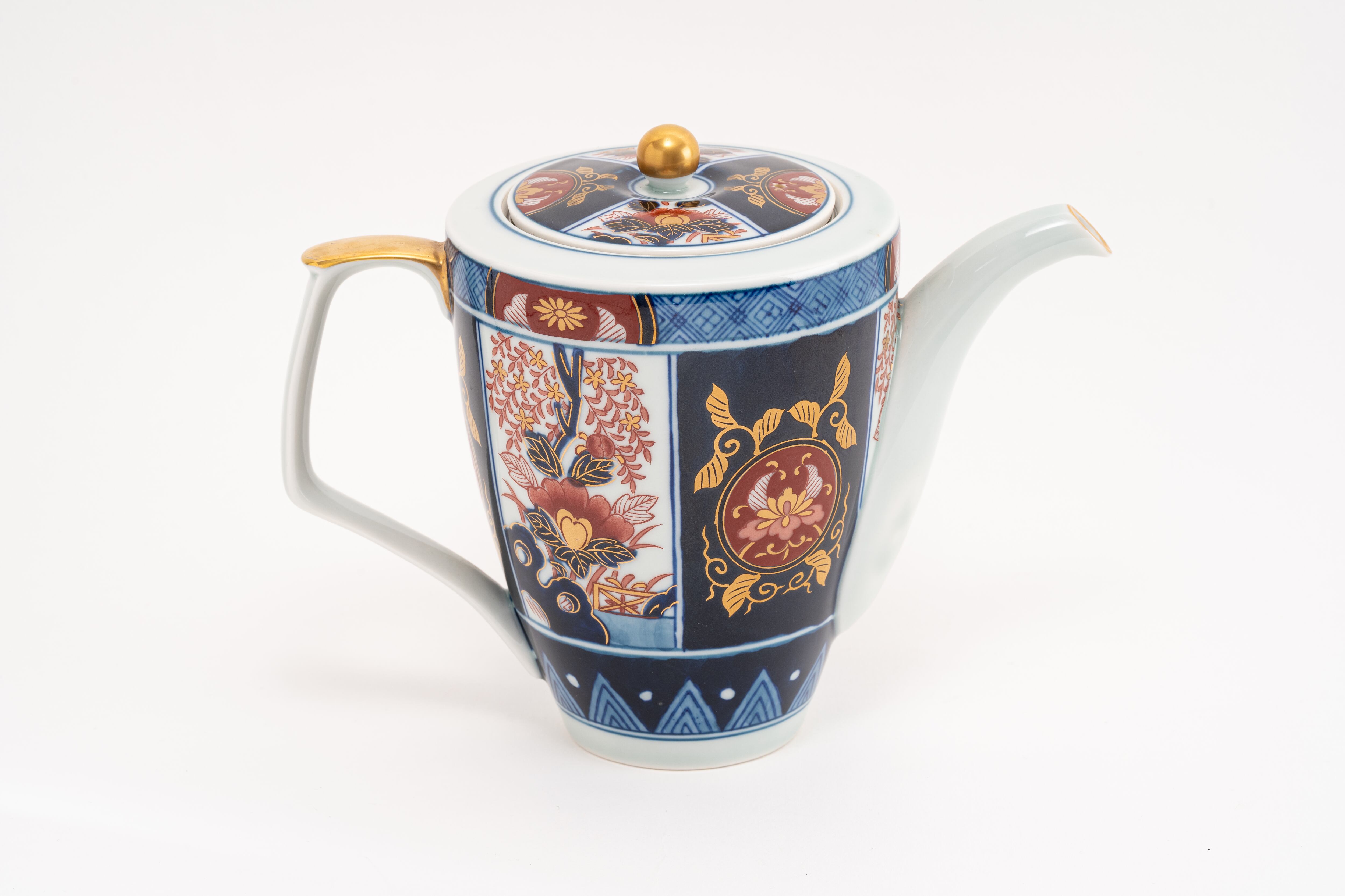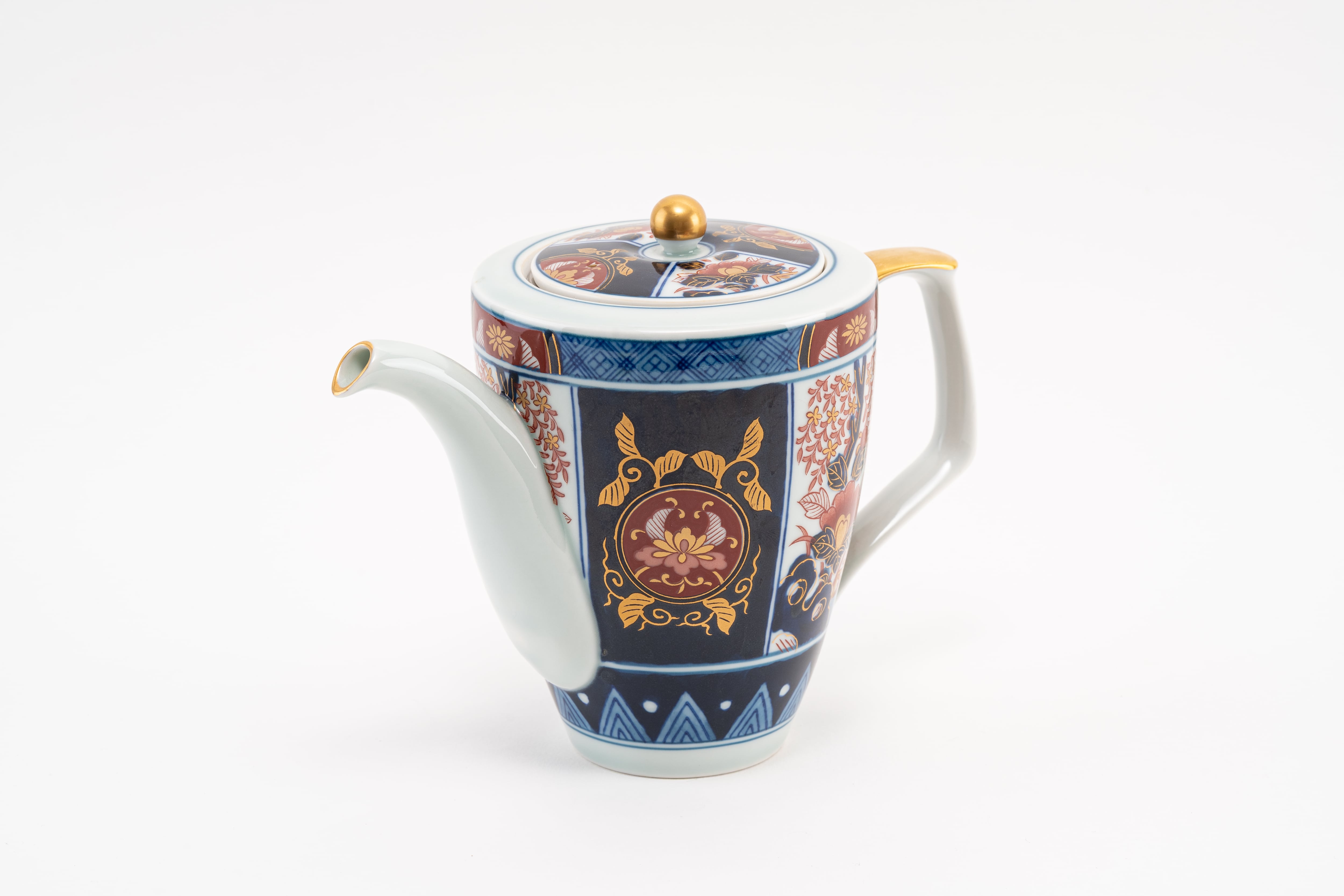 深い藍と金彩が織りなす古伊万里文様を纏った、瀬兵窯のポットです。花鳥文や唐草、幾何学模様が緻密に描かれ、400年の有田焼の伝統を今に伝える格調高い逸品です。
