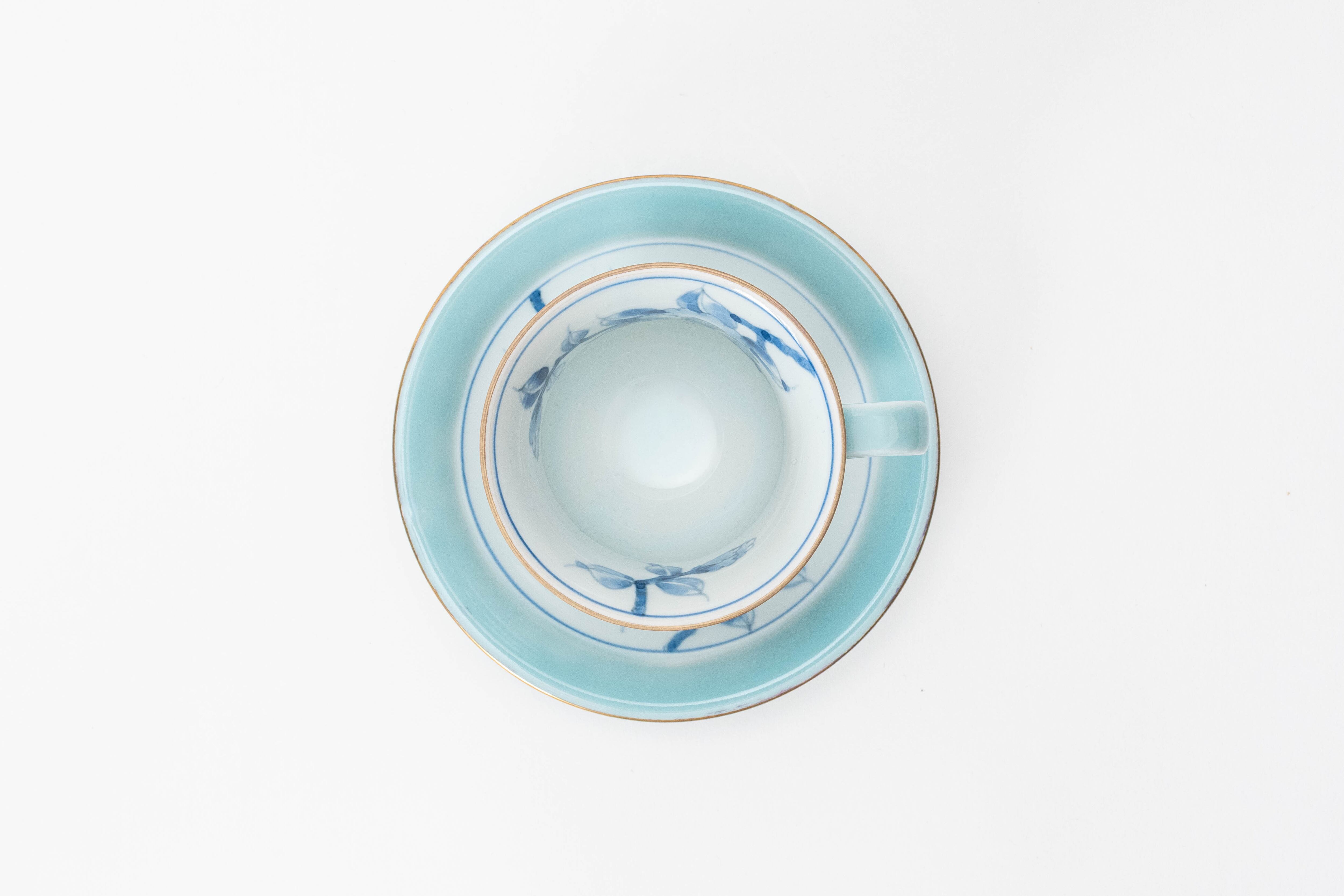 【有田焼】三宅窯 モーニング碗皿 青磁カメリア